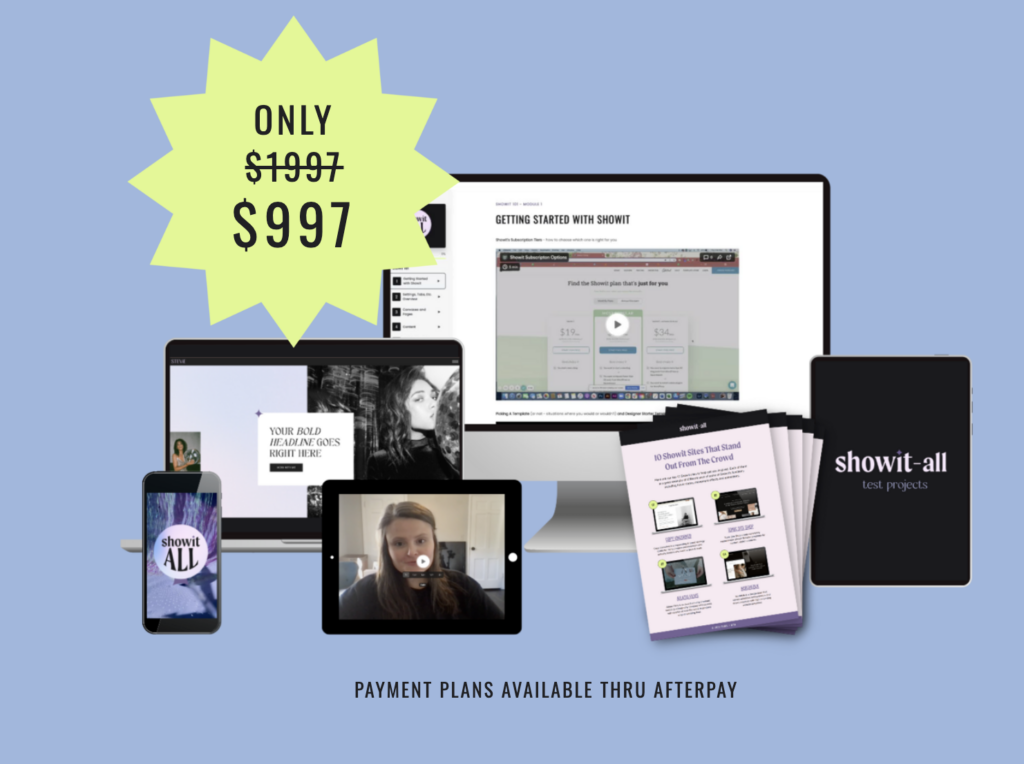 “The whole shebang! All 3 parts outlined above PLUS a crazy amount of support and bonuses. Showit-All is truly the most comprehensive Showit course in the game.”